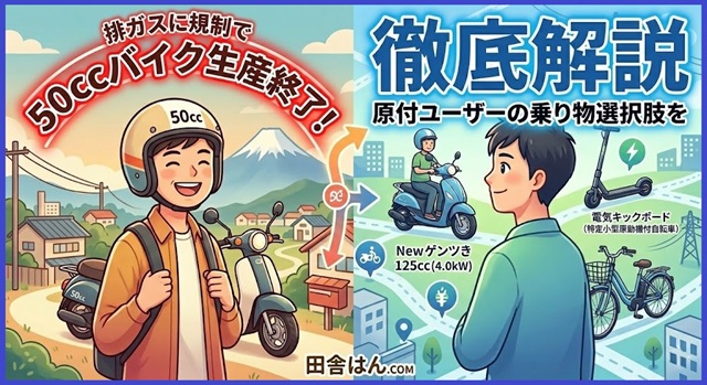 その他の情報排ガス規制で50ccバイク生産終了!原付ユーザーの乗り物選択肢を徹底解説