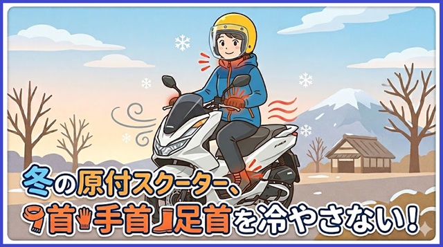 〇〇対策原付スクーターの冬対策!「首・手首・足首」を冷やさない暖かい服装